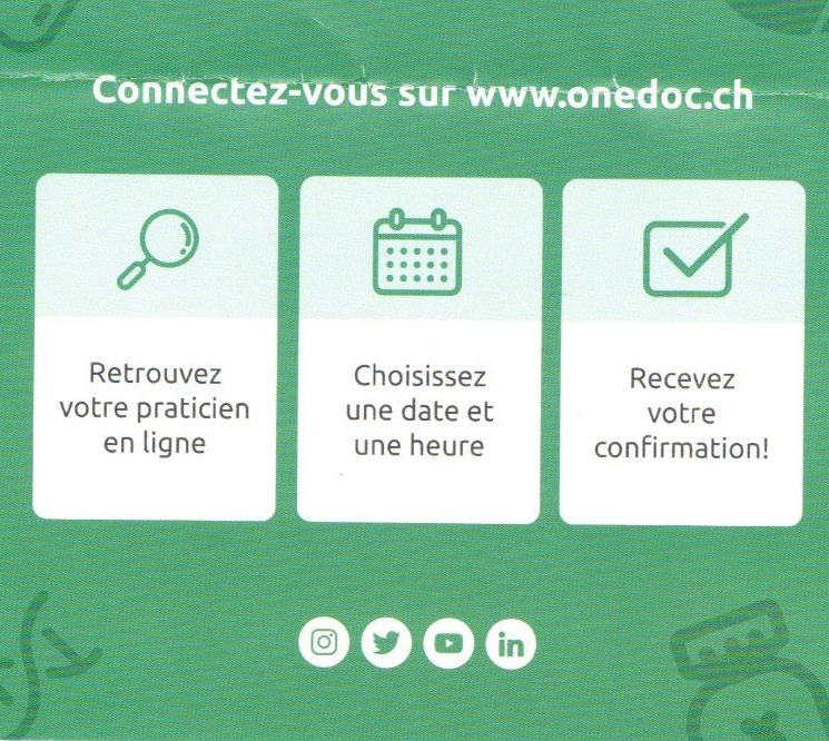 Onedoc (santé en ligne) Prenez votre prochain rendez-vous médical en ligne Connectez-vous sur : onedoc ♥ Retrouvez votre praticien en ligne. ♥ Choisissez une date et une heure. ♥ Recevez votre confirmation. Poster le commentaire Annuler la réponseVotre adresse e-mail ne sera pas publiée. Les champs obligatoires sont indiqués avec *Commentaire * Nom E-mail Site web Enregistrer mon nom, mon e-mail et mon site dans le navigateur pour mon prochain commentaire.